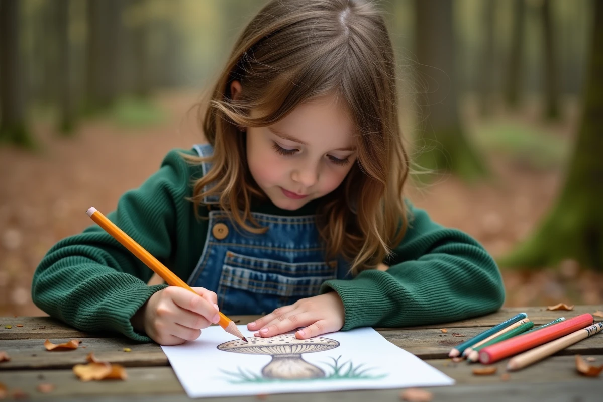 Dès la maternelle et jusque dans les ateliers d’arts plastiques, le coloriage de champignons attire le regard des enfants. Ce motif, à la fois familier et porteur de mystère, déclenche une avalanche de questions. L’amanite tue-mouches et sa robe écarlate parsemée de points blancs, la girolle couleur or ou encore le cèpe trapu : chaque espèce devient un prétexte à observer, comparer, distinguer. Fini les contours approximatifs : le dessin réaliste ouvre la porte à une première expérience d’observation scientifique de la nature.