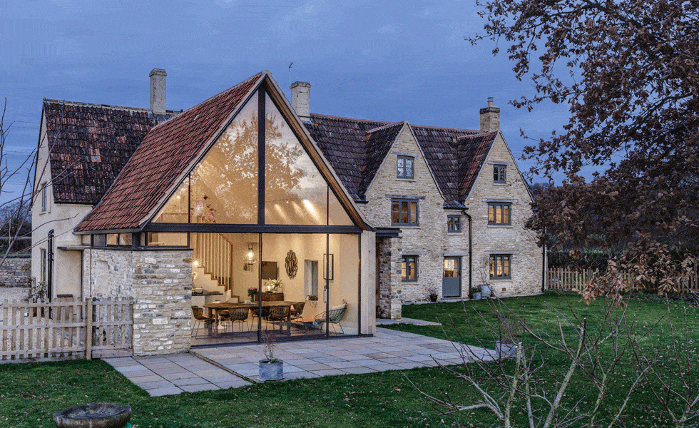 Un pignon vitré qui dialogue harmonieusement avec une bâtisse traditionnelle du Cotswolds (image : Simon Maxwell).