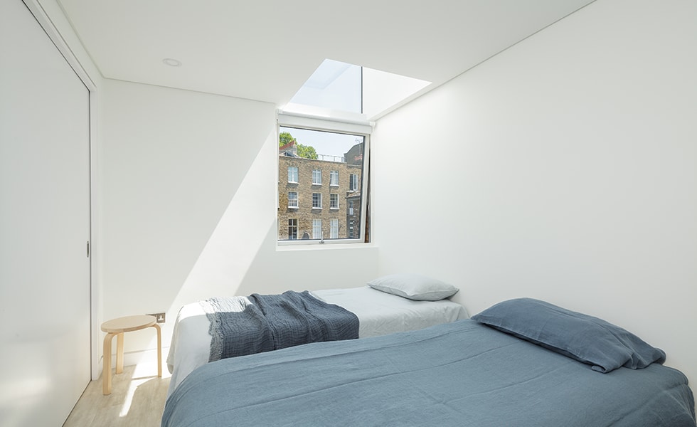 Dans ce passivhaus, le triple vitrage se combine à un quadruple vitrage en toiture pour une performance maximale.