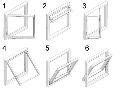 1. Ouverture latérale : le plus répandu, s’ouvre sur le côté.2. Top Light : vitrage fixe surmonté d’un châssis à charnière en haut.3. Pliant coulissant : le vantail se plie, libérant un large passage.4. Auvent : articulation en haut, pratique sous la pluie.5. Hung/trémie : charnière en bas, souvent choisi pour les sous-sols.6. Pivot central : articulation médiane, permet une ouverture généreuse sans empiéter sur l’espace intérieur.