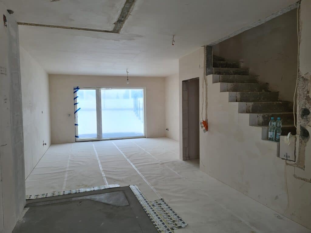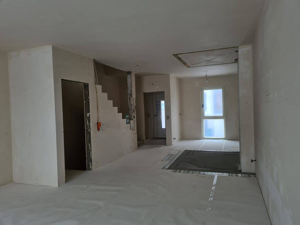 À ceux qui cherchent de l’espace sans extravagance, cette maison familiale s’étend sur 146 m², répartis sur deux étages, à l’état de développement. Un véritable terrain de jeu pour qui souhaite modeler son intérieur à son image. La distribution des pièces répond à une logique pratique et confortable : on trouve un vaste salon lumineux, une cuisine fonctionnelle, deux salles de bains, trois chambres pour accueillir famille ou amis, ainsi qu’un garage, une chaufferie et un hall d’entrée. Un balcon s’ajoute à l’ensemble, prolongeant le salon vers l’extérieur, tandis que la terrasse invite aux soirées d’été ou aux matins tranquilles.
